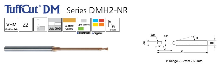 | DMH2 005N-R01-010 | 16° | R0.1 | 1.45 | 1.56 | 1.66 | 1.85 | 1.34 | 50 | 0.5 | 1 | 4, 0.5 | 0.48 |