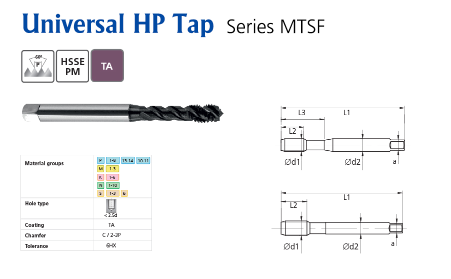 | Tool No. | a | L1 | L2 | L3 | M ød1 | øD2 | P | Tapping Size |